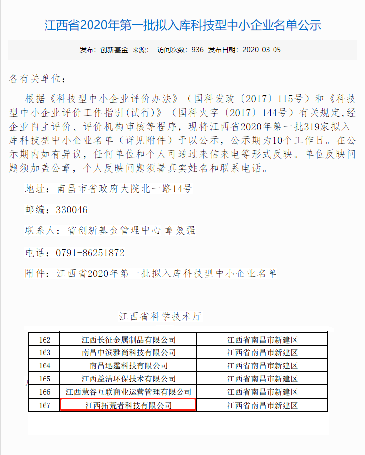 2020年3月4日,江西K8凯发国际科技有限公司荣选江西省拟入库科技型中小企业名单。