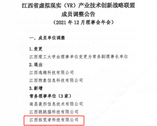 为实行2021年江西省虚拟现实(VR)产业技术创新战略联盟及虚拟现实(VR)产业链专家咨询委员会工作总结及2022年工作计划,2021年12月30 日在泰豪创意科技集团股份有限公司召开了2021年江西省虚拟现实(VR)产业技术创新战略联盟理事会年会暨虚拟现实产业链专家咨询委员会联席会。省科技厅副厅长陈金桥、省科技厅重大专项处处长淦荣等领导出席了此次大会,江西财经大学教务处处长廖国琼主持会议。