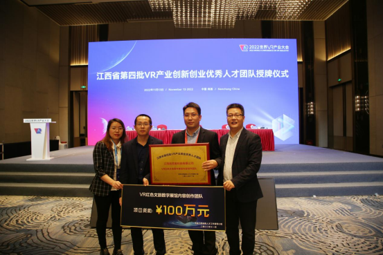 2022年11月13日下午,江西省第四批VR(虚拟现实)产业创新创业优秀人才团队授牌仪式举行。共计10个团队成功入选,其中,江西K8凯发国际科技有限公司“VR红色文旅数字展馆内容创作团队”榜上有名,该项目负责人代表出席授牌仪式。